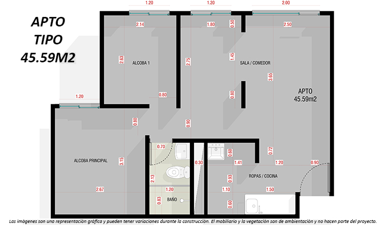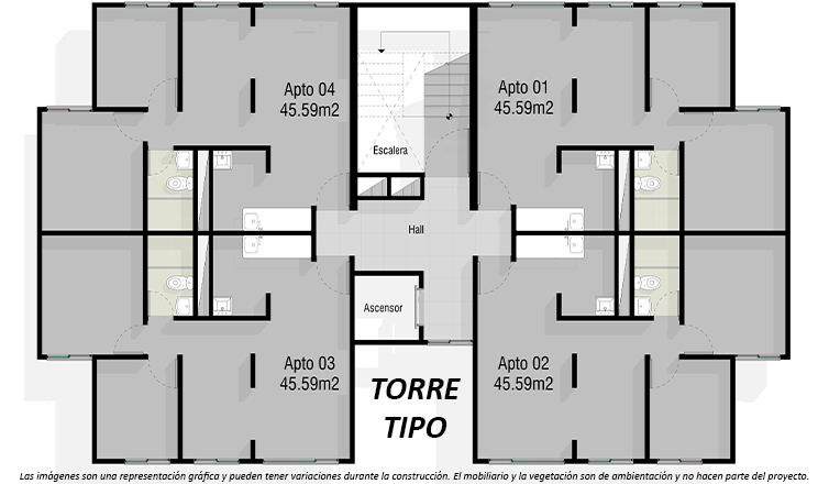 Las imágenes son una representación gráfica y pueden tener variaciones durante la construcción. El mobiliario y la vegetación son una ambientación y no hacen parte del proyecto.